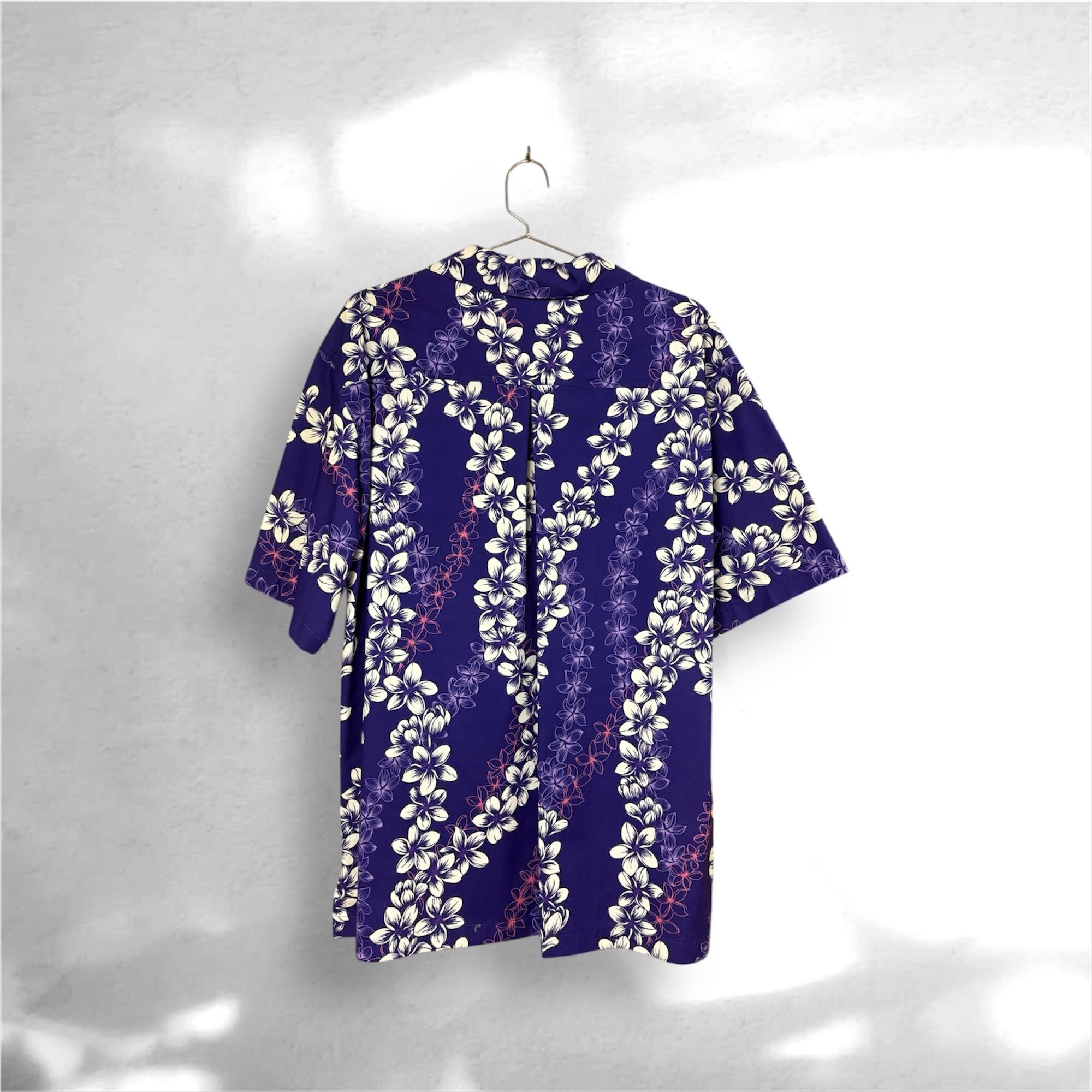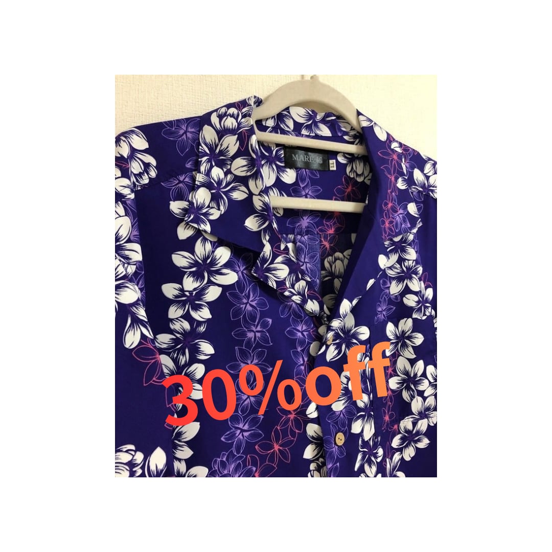 ハワイの伝統的な花飾り「レイ」をモチーフにした、クラシックなレイ柄の開襟半袖シャツです。